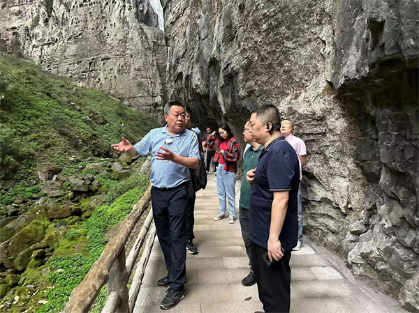 峨眉山澳网官方网站股份有限公司一行首先实地考察了天生三桥景区,听取了武隆景区智慧澳网官方网站建设运营情况。入围“第一批重庆市智慧澳网官方网站示范景区(度假区)”名单、被授予2022年重庆市智慧澳网官方网站景区典型案例,武隆景区不断完善景区智能化设备设施,有效提升澳网官方网站硬环境,为广大游客带来巨大便利,智慧澳网官方网站建设初见成效。
