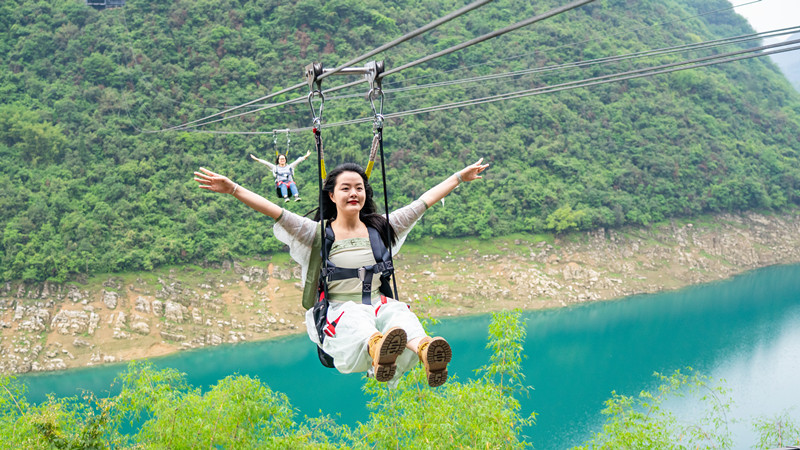 5月8日,武隆户外运动又添新耍事,世界最长的双向过江滑索——芙蓉江过江速滑将重新对外开放,在300米高的江上俯瞰芙蓉江秀丽美景,尽情体验飘然过江、自由飞翔的“速度与激情”!