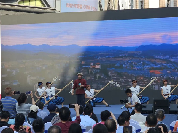 活动现场,具有武隆地标的非遗节目《抬石号子》和文创产品亮相展会现场,吸引众多游客驻足观看。