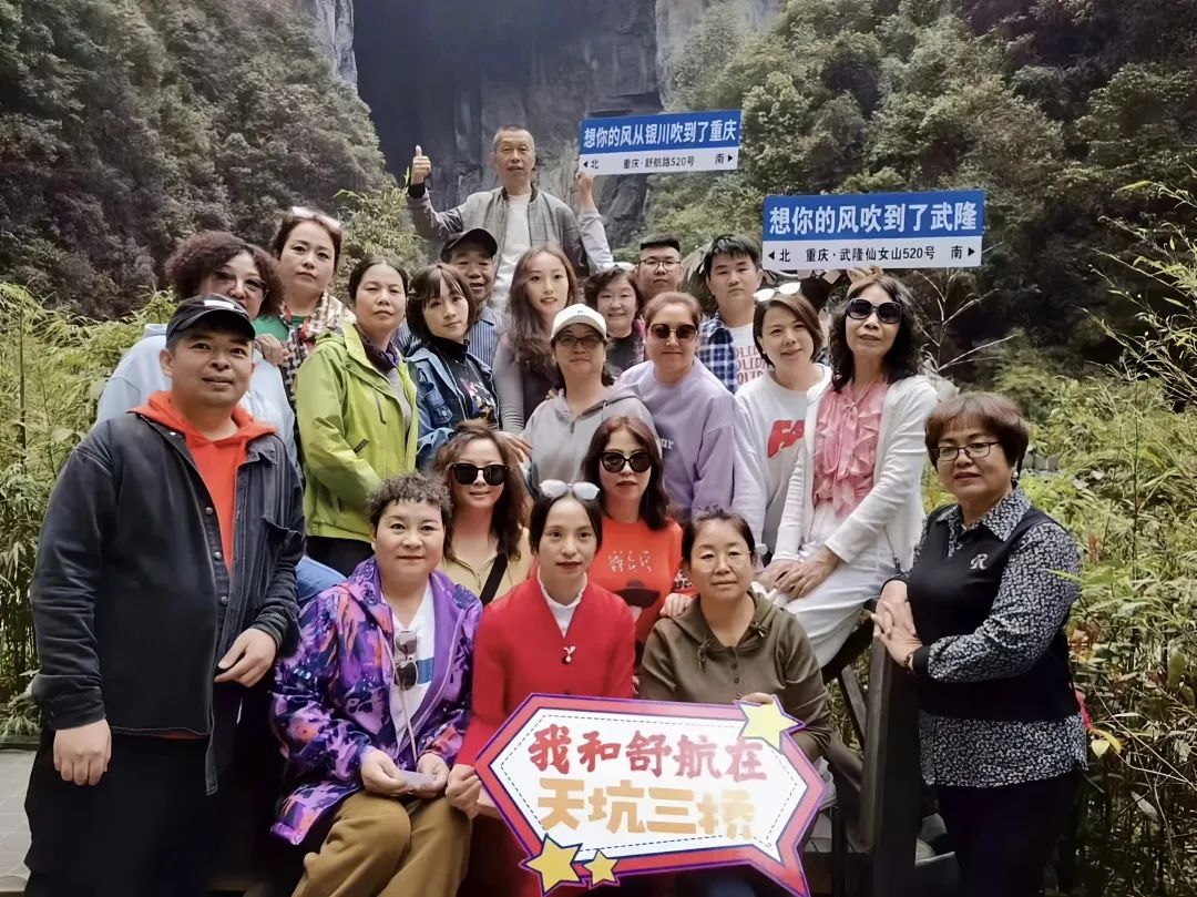 游客中有一个70多岁的老人团队,他们从山东济南出发,到重庆成功拼团5天4晚的旅行。而他们与武隆结缘,仅仅就是在旅行社看到了武隆的照片,大家一致决定就去武隆。