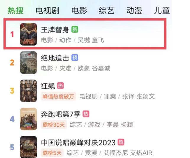 5月26日下午16:00,由功夫硬汉吴樾、“晶女郎”童飞、相声演员孙越,网络达人叨叨、唐人等,共同演绎的动作搞笑电影《王牌替身》全网首播,打斗精彩、笑料不断,《王牌替身》一播出就上榜爱奇艺站内热搜总榜/电影榜第一。作为该电影的唯一外景拍摄地,武隆仙女山、白马山、懒坝等美景元素更是为该电影增添了不少看点。