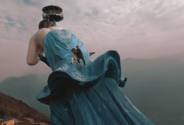 飞天之吻位于白马山天尺情缘景区,高达55米,建立在千米高的悬崖边上,是全球唯一的双子互动飞行岛,南边代表的是太子,而北面代表的是仙女。一男一女两座岛屿,从地面上慢慢升到天空当中,在高空旋转完成高空一吻,异常刺激是重庆最热门的网红打卡地之一。