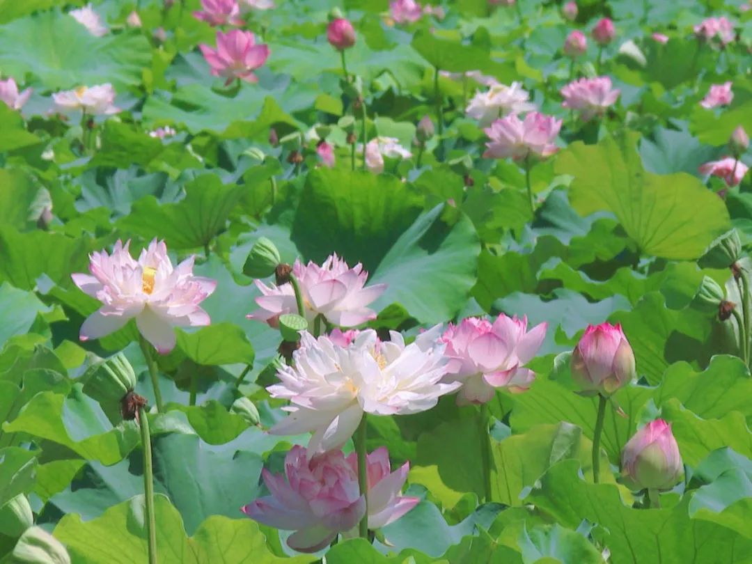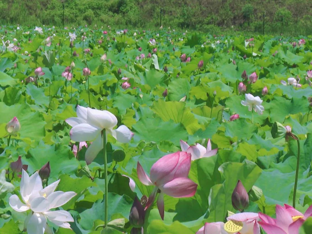 走进大田湿地人家,放眼望去,在蓝天和阳光的映衬下,500余亩荷塘暗香浮动,花开绚烂。微风徐来,吹起荷叶田田、送来荷香阵阵。一眼望去,或粉或白的荷花亭亭玉立,在一池碧绿的荷叶点缀下,宛如一幅美丽的夏日油画。