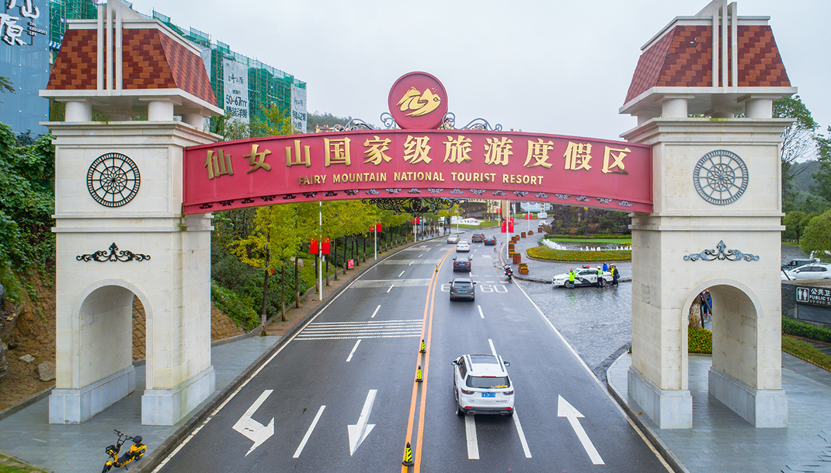 迎宾广场-木里小镇-罗家槽广场-七色天街-游客接待中心-地心之旅-婵娟公园-金马广场-芳草地前门-仙女山广场-仙女天街-加油站-观景平台-依云林里-体育场。