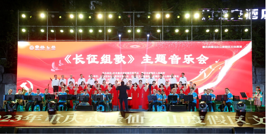 一首首红军曲、一幅幅长征景…在中国共产党建党102周年之际,为铭记红色历史,弘扬长征精神,武隆区庆祝建党102周年《长征组歌》主题音乐会于8月11日晚在仙女山街道仙女广场激情奏响。