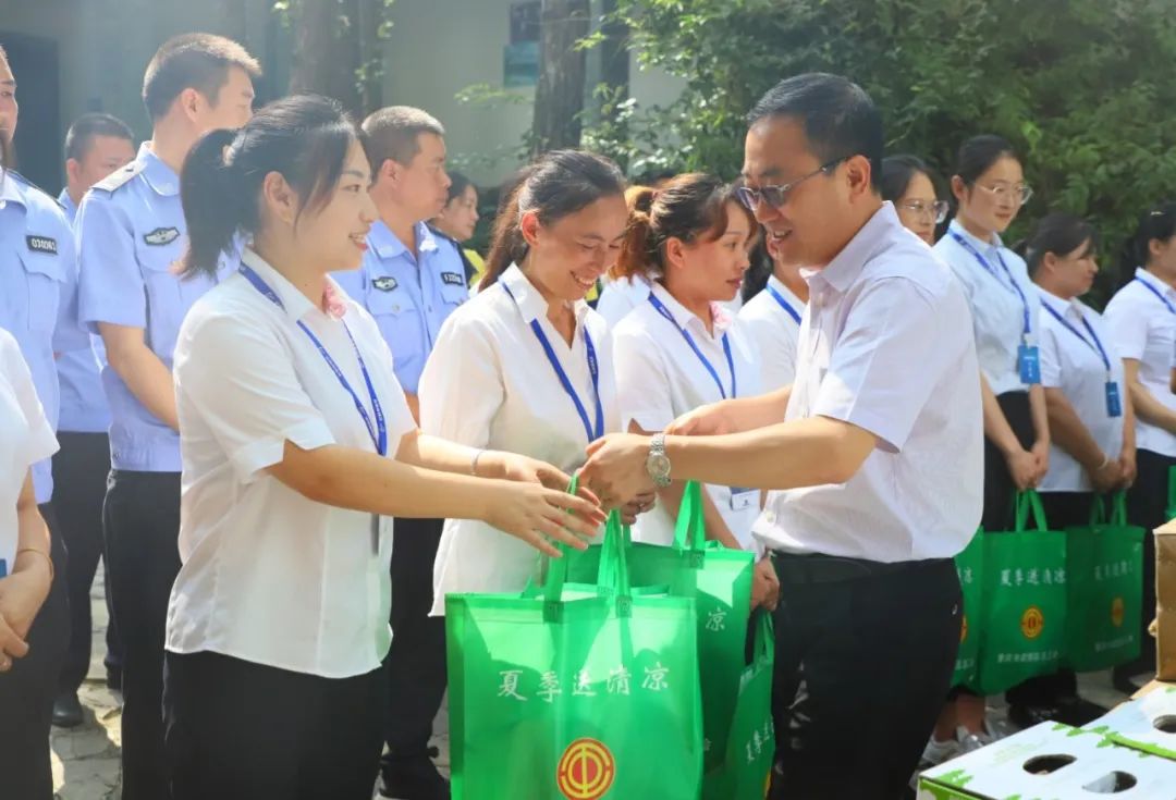 当天,在武隆澳网官方网站产业(集团)公司,何庆看望慰问高温天气下工作的一线工作人员,为他们送去矿泉水、太阳伞、西瓜等防暑降温物品和生活用品。何庆对大家为武隆经济社会发展作出的贡献及辛勤付出表示感谢,并叮嘱大家在坚守工作岗位的同时,要劳逸结合,做好自我保护,注意防暑降温。