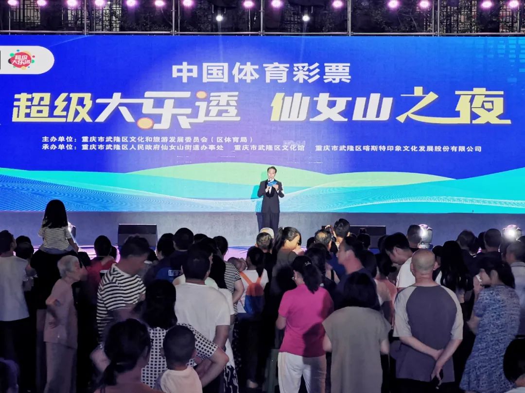 8月12日晚,“中国体育彩票·超级大乐透仙女山之夜”在武隆区仙女山街道仙女广场火热上演,数千名市民齐聚一堂欣赏精彩文艺演出,观看体彩大乐透开奖直播,参与欢乐有奖互动问答,活动现场欢声雷动、热闹非凡。