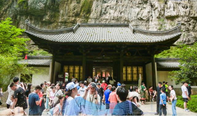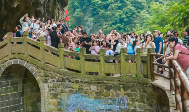 游览完仙女山后,旅行大团又马不停蹄的来到了天生三桥景区。无论是景区开辟的绿色通道、工作人员的热心服务,还是景区巨型LED屏幕欢迎词,都让游客们感受到了景区的重视,以及卓越的澳网官方网站品质。在天生三桥景区,才刚刚下电梯,豁然洞开的天龙桥一下就折服了游客,《满城尽带黄金甲》唯一外景取景——天福官驿,更是引得游客纷纷掏出手机拍照留影。