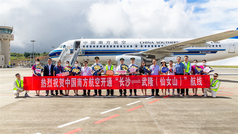 (通讯员 于海洋)8月29日上午11点10分,由南方航空执飞的CZ2261航班平稳降落在仙女山机场,标志着重庆仙女山机场今年的第二条点对点直达航线“长沙——武隆仙女山”正式开通。今后重庆武隆和湖南长沙两个“网红城市”密切相连,从长沙出发打个“飞的”直达武隆,欣赏大美武隆的壮丽美景。