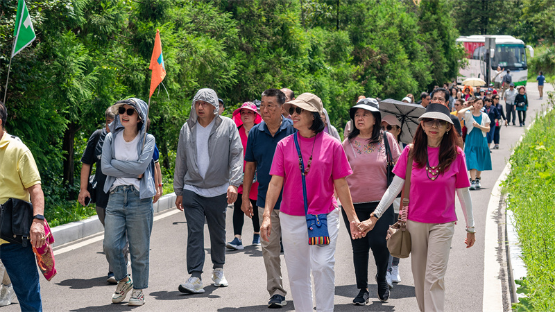 游览完白马山天尺情缘景区后,旅行团又马不停蹄的赶往天生三桥景区。为让不远千里前来的游客感受宾至如归的服务,景区特别开辟绿色通道,让游客们有序高效进入景区。神奇壮观的世界自然遗产风光,完善的配套设施和良好的服务水平,让游客们陶醉忘返。
