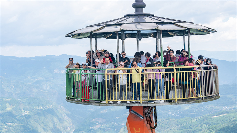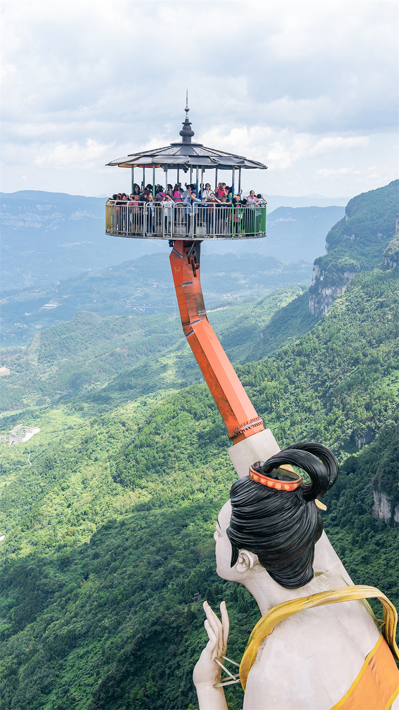 旅行团一到武隆,首先就来到了白马山天尺情缘景区。以白马山和仙女山的爱情文化为主题,白马山天尺情缘景区是一处集休闲、娱乐、亲子、观光、度假于一体的生态澳网官方网站景区。特别是网红景点“飞天之吻”,尤其受游客青睐,不少印尼游客慕名而来,争先体验高空之上的浪漫与刺激。作为全球唯一的双子互动式飞行岛,“飞天之吻”绝对是此次白马山之行的重头戏。它建于望仙崖的悬崖边上,升起后底座距崖底乌江的垂直落差达1314米。
