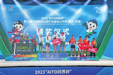 在完成当日第四赛段的激烈争夺后,2023“AITO问界杯”第18届中国国际山地户外运动公开赛正式完赛收官,各参赛队的总成绩排名也尘埃落定。最终,Team Topsport滔博运动队凭借开赛以来持续的强力表现,以22小时08分33秒8的总成绩获得冠军,北京酷赛队和遵义医科大学魔迅户外队则分别以22小时24分54秒6和23小时0分11秒1获得亚军和季军。此外,值得一提的是,作为赛事东道主组建参赛队伍的武隆喀斯特队也在本届公开赛中表现出色,以总成绩23小时34分57秒4获得第五名,创造了公开赛举办以来武隆区组织队伍参赛的最好成绩。