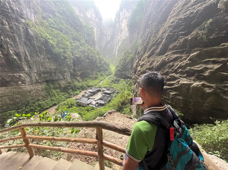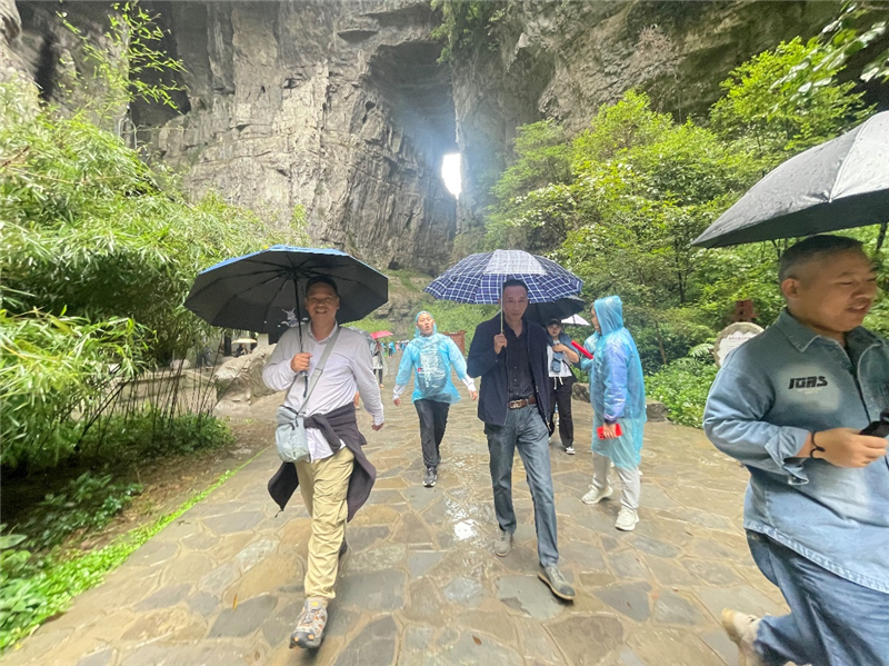 在两天充实而欢快的行程中,达人们首先前往了武隆天生三桥。“站在谷底下抬头仰望,仿佛看到三条巨龙在落差数百米的山间翱翔,气势磅礴的景色让人被大自然的神奇所吞没!”来自贵州的历史文化博主,全网粉丝300万的敖先生说,天生三桥的雄伟神奇,深深激发了作者们的创作热情。