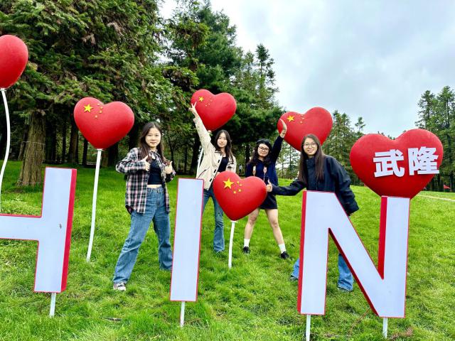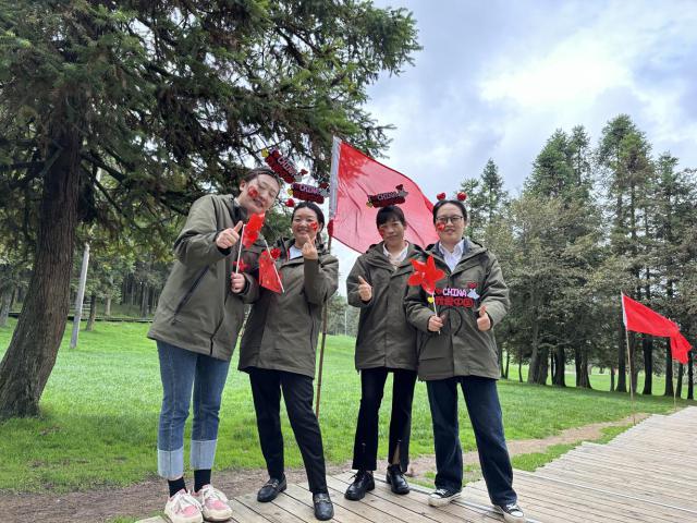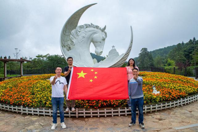 在仙女山景区,鲜艳的五星红旗迎风招展、随处可见,草原森林的旖旎风景中,一抹抹的“中国红”构成了一道道节日版亮丽风景线。景区内到处洋溢着节日的喜庆气氛,“我为祖国点赞”打卡点吸引了很多游人驻足打卡。游客们纷纷与国旗拍照合影,或者贴国旗贴纸、手拿小国旗,以此来表达了欢乐吉祥、共向未来的美好愿望。