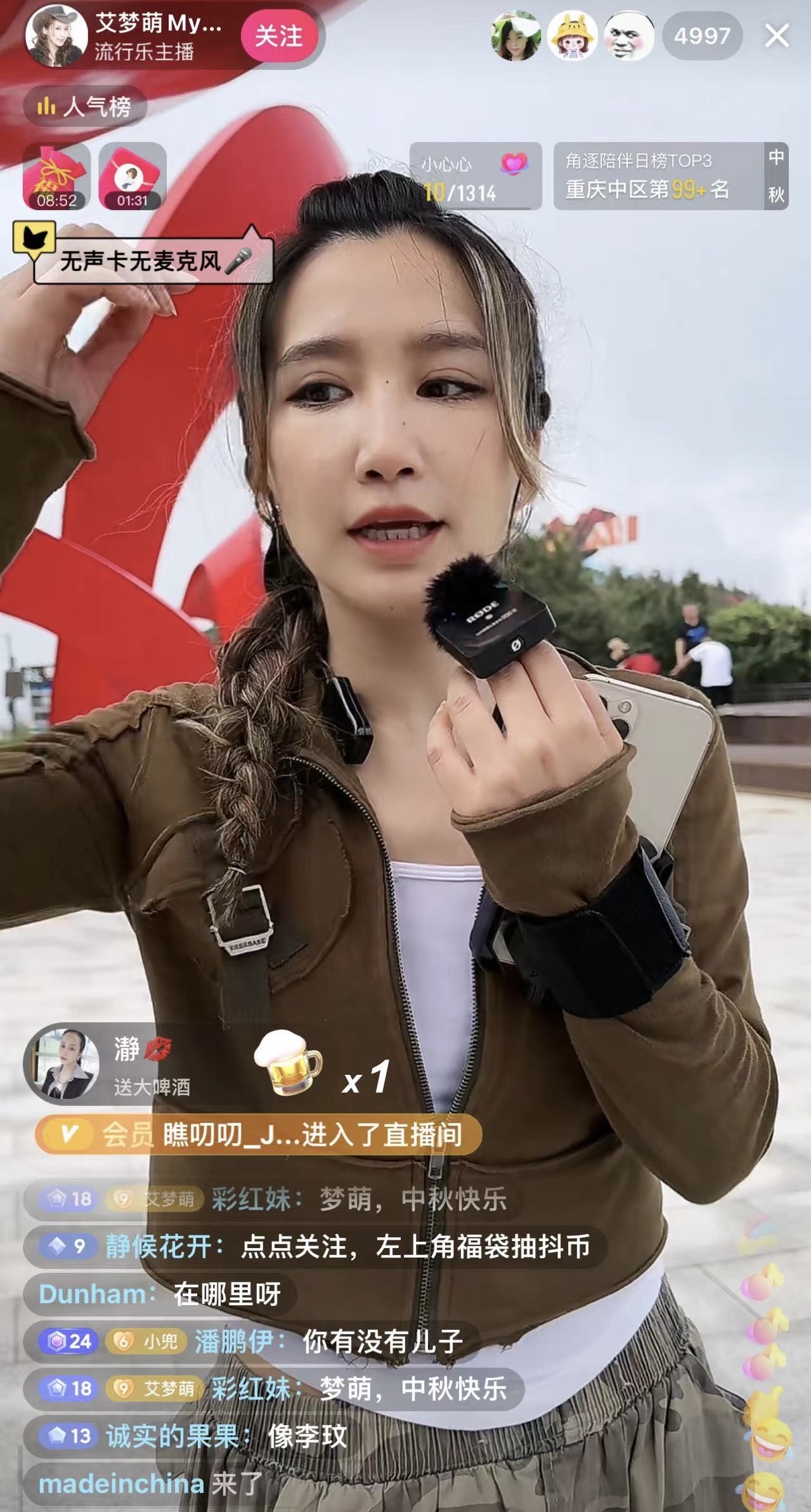 中秋选择到重庆武隆看美景、过中秋吃月饼的,还有一位很特别的游客——歌手艾梦萌。作为2006超级女声全国第4名,艾梦萌演唱实力不俗,因为长相酷似李玟,并且舞台爆发力十足,所以很多粉丝都称她为“小李玟”。此次艾梦萌带上家人一起奔赴武隆,被美景所吸引还现场开起了直播,吸引不少游客围观。