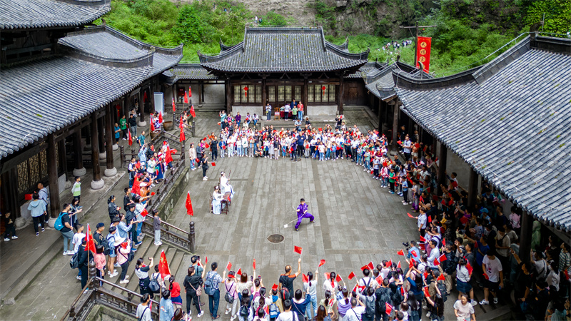 《我和我的祖国》快闪、“我与国旗合个影”、古装巡逻、古筝弹奏、武术表演、登高邀月、DIY月饼、NPC对诗......在这个刚刚过去的国庆假期,武隆立足传统特色生态澳网官方网站优势,持续在仙女山、白马山、天生三桥、懒坝、归原小镇等景区景点开展全天候的“月满中秋·礼赞国庆”国庆专属系列活动,一个个充满视觉冲击与文化享受的节目表演一经登场,便引得现场游客掌声连连、大呼过瘾。