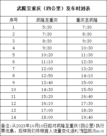 对武隆至重庆(重庆至武隆)班车均实行浮动票价