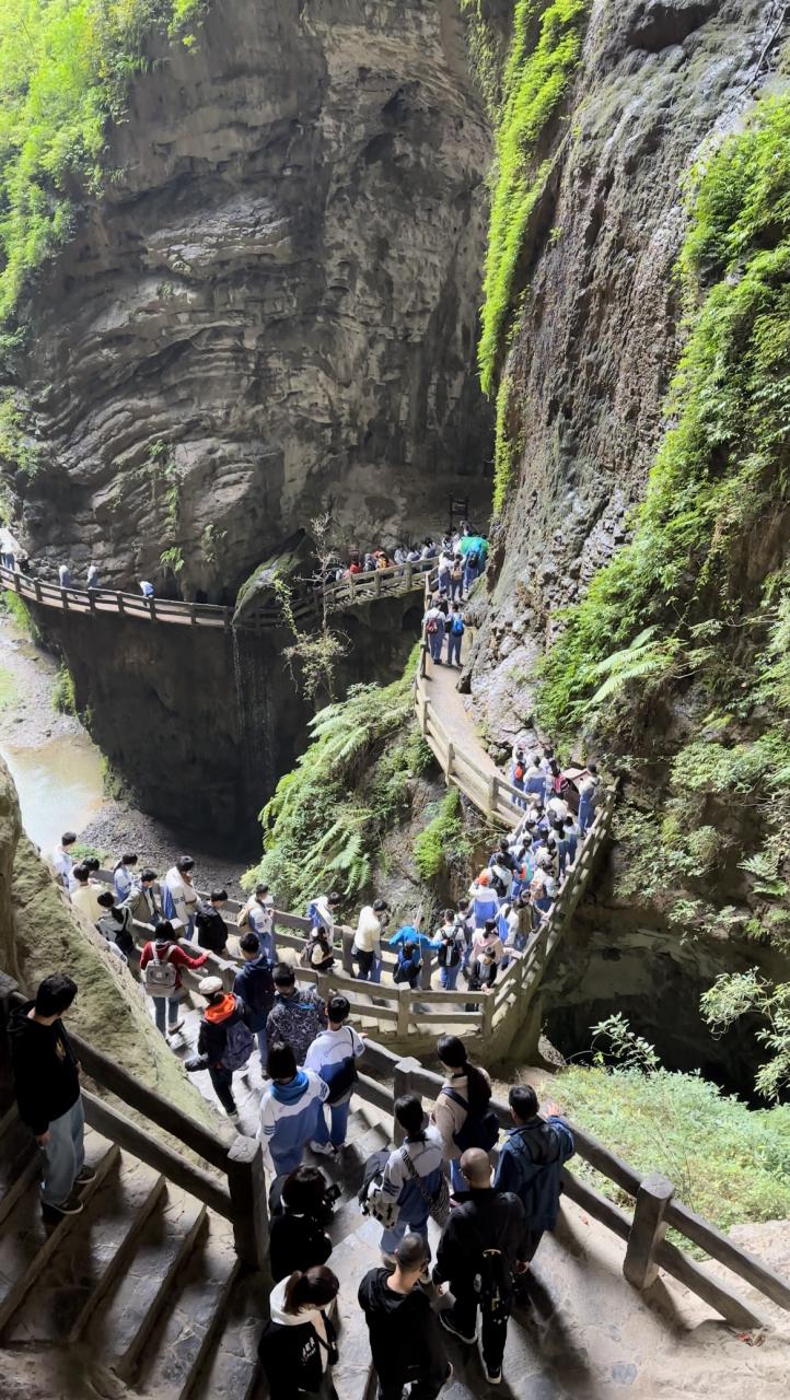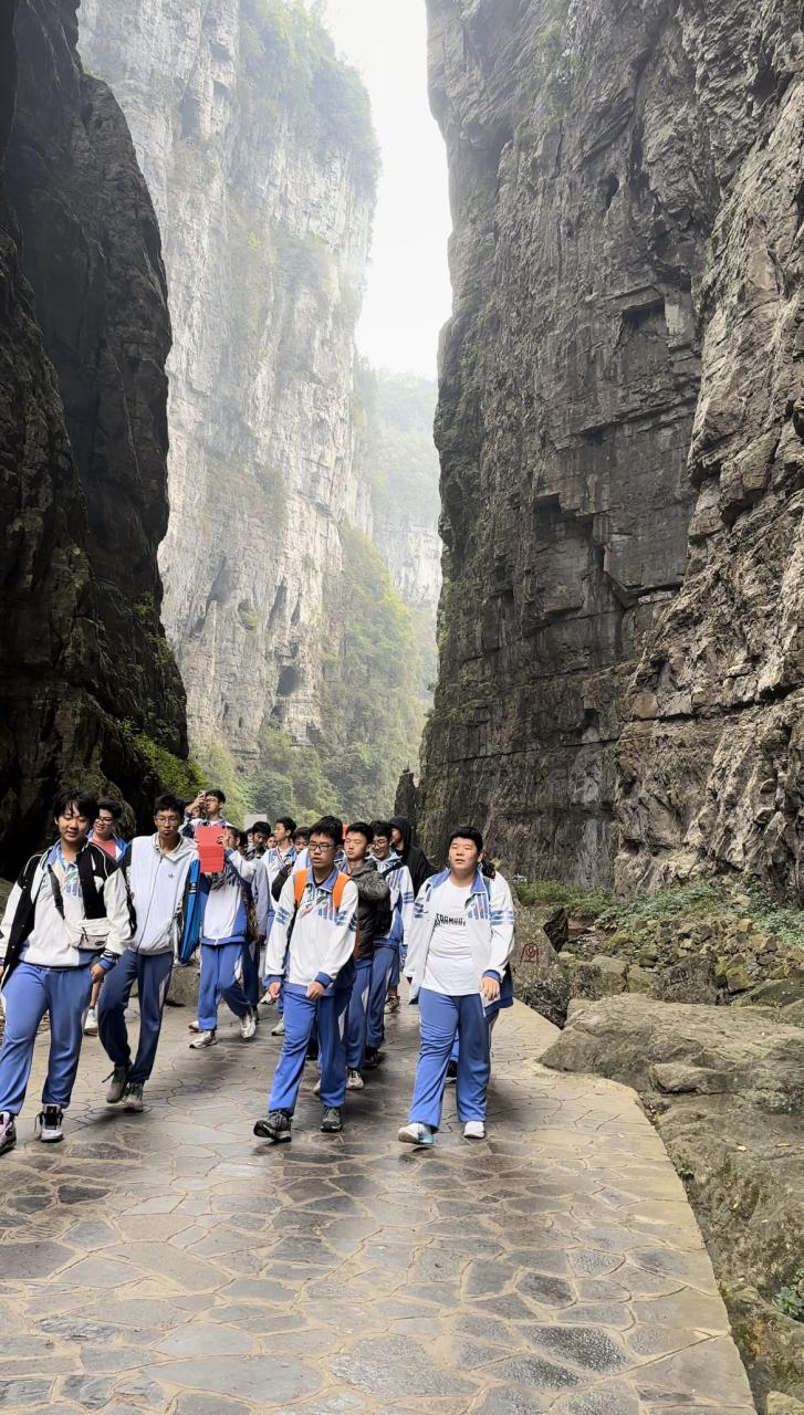 11月9日,北京市陈经纶中学分校500余名学生走进世界自然遗产地武隆,在天生三桥地质科普教育基地、地球最美裂痕龙水峡地缝景区开展地质科普研学旅行,感受世界自然遗产的独特魅力。