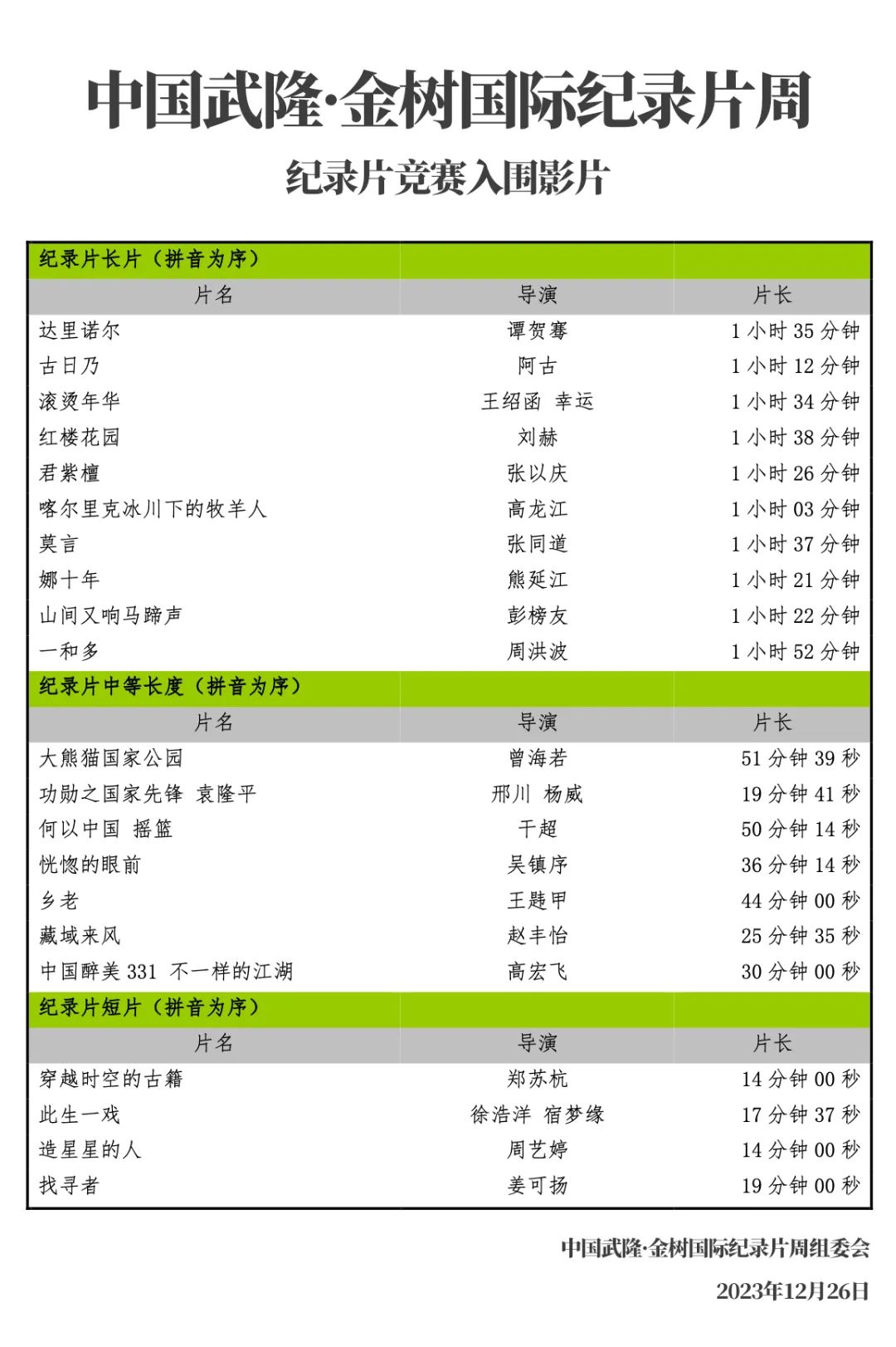 欢迎所有入围主创、纪录片创作者、纪录片爱好者莅临,新年伊始齐聚中国重庆武隆,共享盛典。