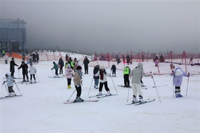 这几天,仙女山冰雪季持续升温。在仙女山室外滑雪场,尖叫声、欢呼声此起彼伏,前来玩雪滑雪的游客络绎不绝,小朋友们坐在五彩缤纷的滑雪车上,沿着雪坡顺势而下;滑雪爱好者则在教练的带领下练习雪板滑雪的基本动作,大家在白雪皑皑的童话世界里体验不一样的节日欢乐。