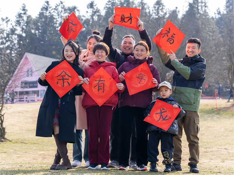 春联,是笔尖上弥久留香的年味,是记忆里红红火火的福祉。春节期间,在仙女山景区,现场写春联、剪窗花、手编中国结、画糖画、写福字、吃汤圆等春节传统民俗体验活动引来游客如织。