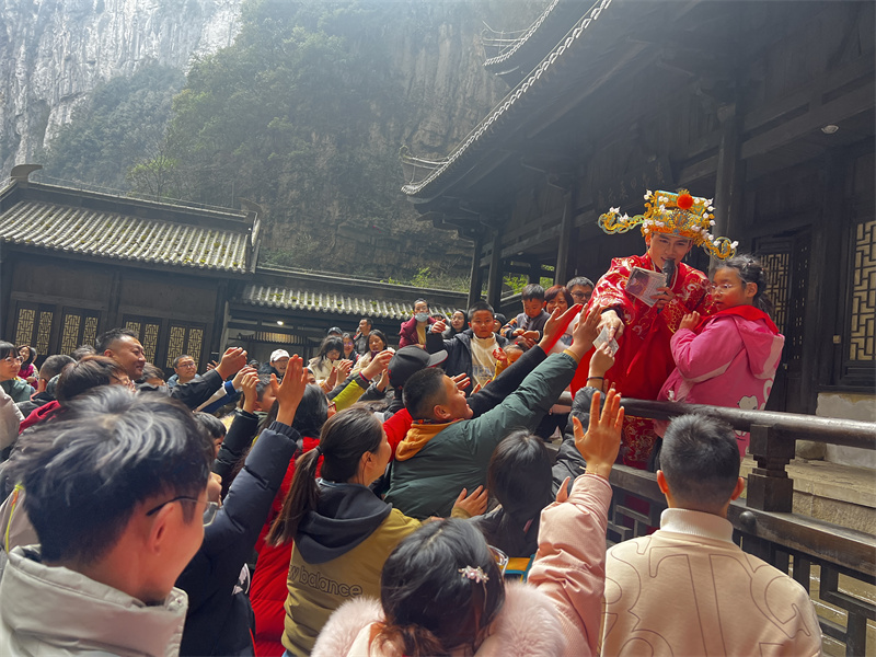 财神是中国人家喻户晓的神。新年到来,好彩头当然必不可少。春节期间,武隆景区举行了“财神送财”主题活动,超高颜值的“财神爷”可谓是赚足了人气,游客纷纷赞叹:不知道该贪财还是贪色。