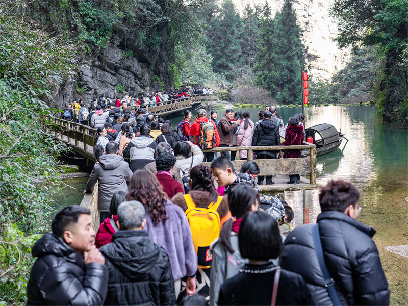 大年初五,武隆持续迎来晴好天气,好天气刺激出游热情。武隆芙蓉洞、芙蓉江等各景区景点游人如织,游客们纷纷利用假期,来武感受中国唯一世界自然洞穴、水上喀斯特森林的神奇魅力。