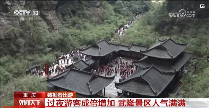 继《印象武隆》节目之一“太阳出来喜洋洋”登上2024龙年央视春晚,获全社会关注以及媒体纷纷报道后,2月13日(大年初四)20:00,中国武隆·金树国际纪录片周闭幕式盛典,在CETV1频道正式首播;2月14日(大年初四)8:00,武隆景区人气满满登上CCTV-13新闻频道《朝闻天下》。春节期间频频亮相央视等主流媒体,武隆再次为重庆文旅上分“长脸”。