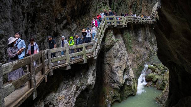 友情提示:春节假期接近尾声,请大家抓住最后时机安排游玩行程。2月16日(大年初七),上万游客利用春节假期来到被称为“地球最美裂痕”的武隆龙水峡地缝景区,观绝景、访天险。行走在一侧是峡谷,一侧是山壁的狭窄栈道上,下望地心深处,当看到地下犹如万丈深渊不见底,不少恐高游客直呼“脚杆打闪闪”。