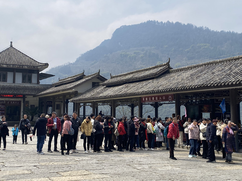 10点30分,游客们便已陆续抵达景区。小编看到,许多“女神”都手握鲜花,据了解,这是景区特意为女性游客准备的宠粉福利。在导游的带领下,游客乘坐过江索道,脸上洋溢着兴奋和期待的表情,朝芙蓉洞驶去。一路上,游客欣赏着江上的美景,听着潺潺流水声,感受着春天的气息。