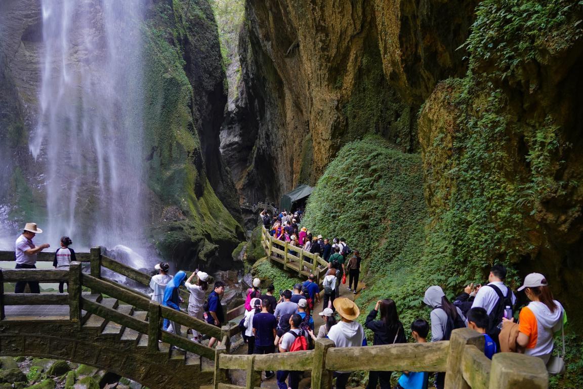 清明小长假第二天,尽管天空下着淅淅沥沥的小雨,但丝毫也没抵挡住游客踏青出游热情,武隆景区如期迎来了游客接待小高峰。受降雨影响,被誉为“地球最美裂痕”的龙水峡地缝景区经过雨水的洗礼后,空气清新、景色养眼,银河飞瀑、地下暗河水雨量充沛,比平日景色更加绝美壮观,吸引众多游客到此观天险、访绝景。