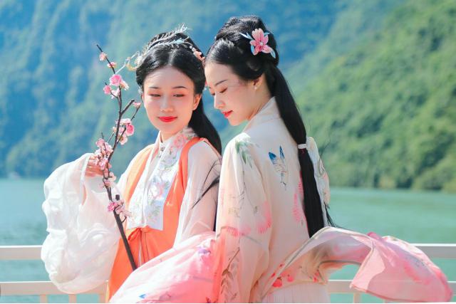 时下的武隆春意款款、仙气满满,正适合赴一场汉服之约,于青山绿水间,轻提裙裾,让翻飞的衣袂采入春光的一角,藏入袖里褶间与心田。