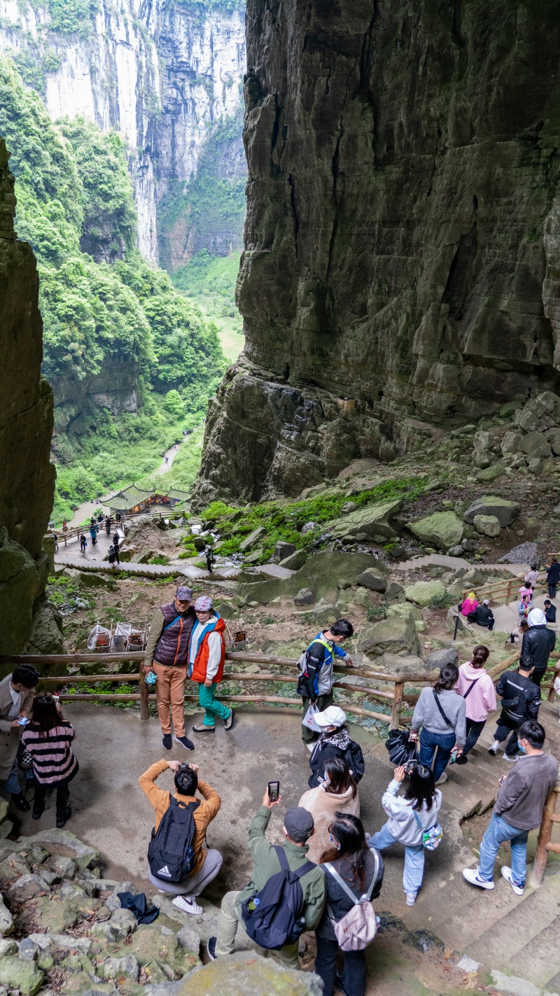 首先,专列团来到了世界上规模最大的天生桥群——天生三桥景区,零距离感受世界自然遗产的魅力。游客们沿着蜿蜒的石板小路前行,雄奇险峻的三桥,一步一景、步步奇观,视线之内,苍翠青绿的草木、潺潺飞溅的流水……一下就折服了游客。“这些石桥非常壮观震撼,在武隆满眼山清水秀,空气好,非常好玩,我非常喜欢!”来自香港的李先生表示。