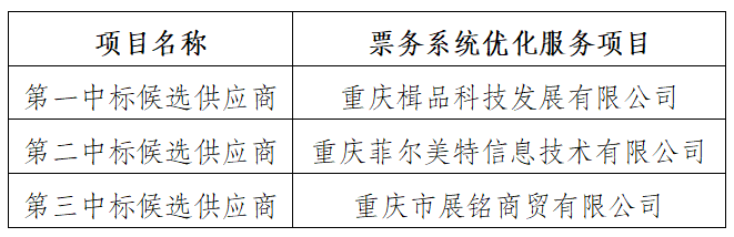 按照重庆武隆澳网官方网站产业(集团)有限公司关于《网络安全服务和票务系统优化服务项目供应商竞争性比选公告》相关要求,比选工作严格按照比选流程及评审方法进行,现将中标候选供应商公示如下: