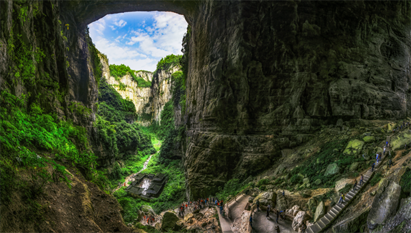 今年五一期间,进入天生三桥景区的游客,将会有三条线路可供选择。一号线路由原电梯下山,可从天龙桥南桥洞进入景区,感受天生三桥的气势磅礴;二号线路天龙旋梯下山的体验则更具赛博感,科技感,神秘感,沿途还能打卡亚洲单块玻璃面积最大的玻璃眺台,让游客分分钟拍出大片;当然,热爱徒步的游客也可以选择三号线路“九道拐”步行进入景区。