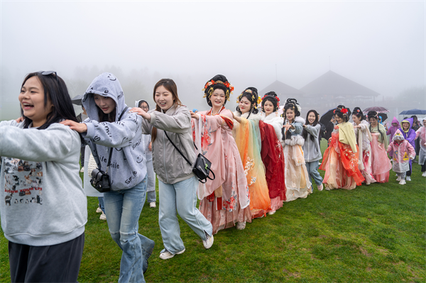 特别是有“南国第一牧原”“东方瑞士”之称的仙女山国家森林公园,1700名川渝高校学子集体玩穿越,穿着汉服化身仙女,邂逅七仙女游园、投壶套圈踢毽子,和巡捕巡游玩抓取“芳心纵火犯”游戏等等,解锁仙女山新玩法,场面甚是壮观!