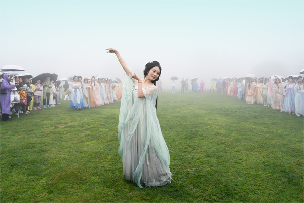 除此之外,还有七仙女在大草原翩翩起舞,用汉服表演来表达中国古代传统服饰之盛,将汉服与大自然完美融合,展现古典国风之美,为学子们呈现一场充满历史底蕴的舞蹈盛宴,也引得游客们不时驻足观赏,合影留恋,让游客们体验不一样的华服之美。