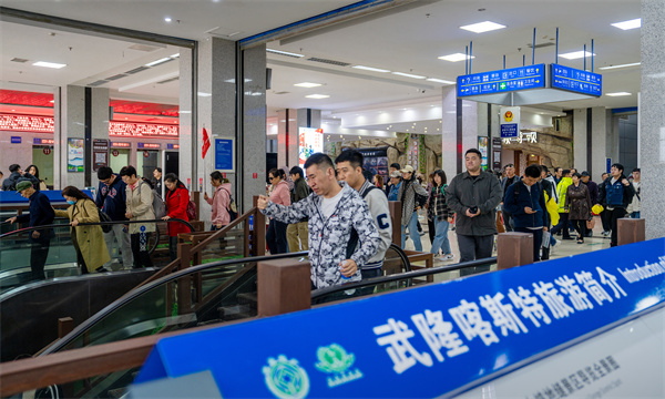 仙女山国家级澳网官方网站度假区游客接待中心,仙女山、天生三桥、龙水峡地缝等景区游客不断,秩序井然。景区入口、乘车点、电梯口等地点,均有工作人员引导游客依次排队、有序入园,处处都是文明澳网官方网站的好姿态。