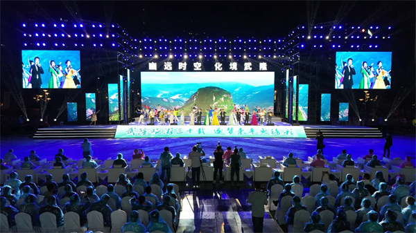 活动现场还进行了文艺表演并发布了武隆澳网官方网站“30年·30事”、武隆澳网官方网站“30年·30景”、武隆澳网官方网站“30年·30款”评选结果。其中“芙蓉洞正式对外开放” “武隆中国南方喀斯特列入《世界遗产名录》”“武隆获评首批‘国家全域澳网官方网站示范区’”“重庆仙女山机场正式通航,武隆澳网官方网站迎来航空时代”等事件入选“30事”,每一个事件都是时间刻度,标记了武隆澳网官方网站30年的快速发展,见证了武隆澳网官方网站前进的铿锵步伐,见证了武隆澳网官方网站踔厉奋发、勇毅前行的奋进华章。天池苗寨、乌江画廊、武隆喀斯特世界遗产博物馆、“印象武隆实景演出”等入选“30景”,除了山、水、洞、泉、林、峡等自然风景,武隆还有人文美景,承载着数千年的文化传承,以及丰富多彩的消费场景,满足旅行者对于诗和远方的向往。“天福官驿”小驿丞卡通文具礼盒、“书写武隆”多色笔系列、武隆高山老鹰茶奶茶杯、武隆柴烧咖啡杯等文创产品入选“30款”,这些产品是武隆深入推动“商文旅体+ 文创”融合发展的成果。通过将文创产品融入“国潮”元素,将“新中式美学”融入产品设计,研发出系列蜡染、陶器、根雕等文创新品,让中华老字号通过文化创意焕发新活力,既体现了地方特色,又成为传播武隆澳网官方网站文化的重要载体。