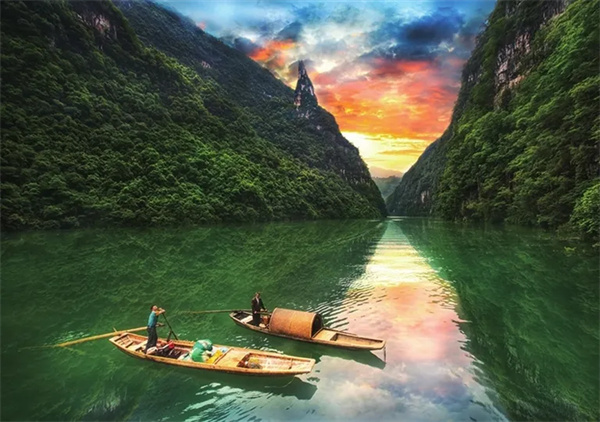 如诗如画乌江画廊。千里乌江,百里画廊。山似斧劈、水如碧玉、虬枝盘旋、水鸟嬉翔。两岸重峦叠嶂、绝壁高耸入云,滩峡栉比,奇险无穷,灵秀清淑,宜于仙矣!
