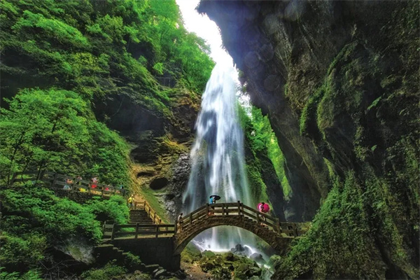 地球裂痕龙水峡地缝。龙水峡地缝是一座典型的岩溶峡谷地缝,位于中国南方喀斯特世界自然遗产地核心区,国家AAAA级景区,国家地质公园。漫步谷底,犹如置身时空隧道,碧潭幽深,飞瀑流泉。