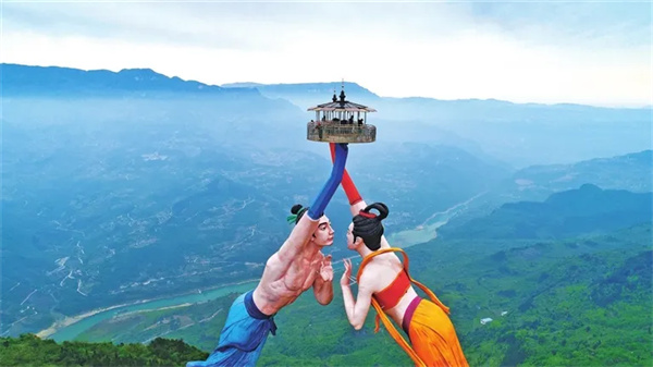 “印象武隆”实景演出。《印象·武隆》是由著名导演张艺谋出任艺术顾问,王潮歌、樊跃担任总导演打造的大型山水实景演出。以濒临消失的国家级非遗“川江号子”为主要内容,让观众在70分钟的演出中亲身体验自然遗产地壮美的自然景观和巴蜀大地独特的风土人情。2024 年3月被评为国家文化产业示范基地。