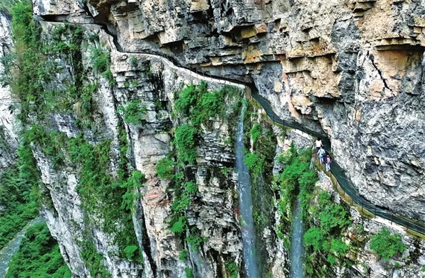 长坝镇挂壁水渠。挂壁水渠位于重庆市武隆区长坝镇前进村的悬崖峭壁上。20多年前,为了解决村民用电、饮水等问题,在 200 米高的悬崖峭壁上历时 2 年开凿出这条水渠,全长 4000 多米,引来许多户外探险澳网官方网站的朋友参观打卡,外交部发言人赵立坚也曾在网上转发“打Call”。