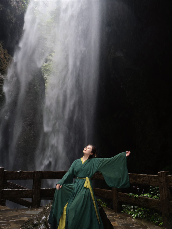 看龙水峡地缝银河飞瀑倾泻,乍以为是银河从天上落下,弥漫飘洒在半空中。一袭青衣,淋了一场雨,背靠山水,在层叠苍翠之间,让自己和植物一样被滋养。仿佛能够感受到江湖中的恩怨情仇,感受到那些传说中的英雄豪杰的英勇与不羁。