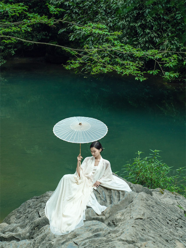 山谷深幽、溪水漫长,侠女眼波流转,躺卧于巨石之上,一把油纸伞美醉了天生三桥,将整个天生三桥点缀得如诗如画,在这片江湖之中,你可以感受到一种别样的自由与畅快。
