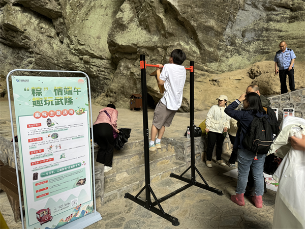 来自湖北武汉的徐女士兴奋地表示:“这已经是我第二次来武隆了,每次来都会有新的发现和体验。这次端午节的悬挂吃粽子、射五毒体验活动非常有趣,既结合了传统习俗,又充满了趣味性。我感受到了端午节浓厚的节日氛围,也感受到了武隆景区的独特魅力。”