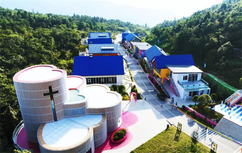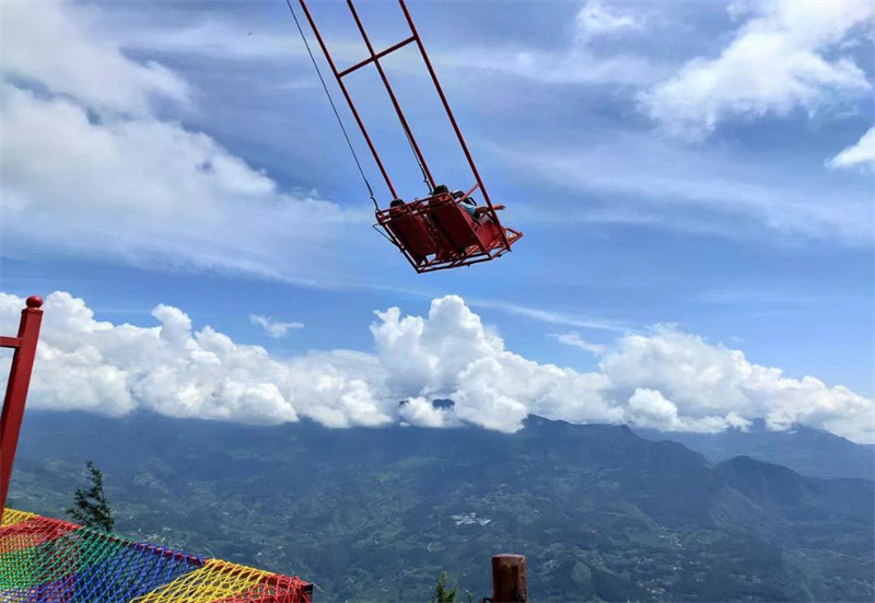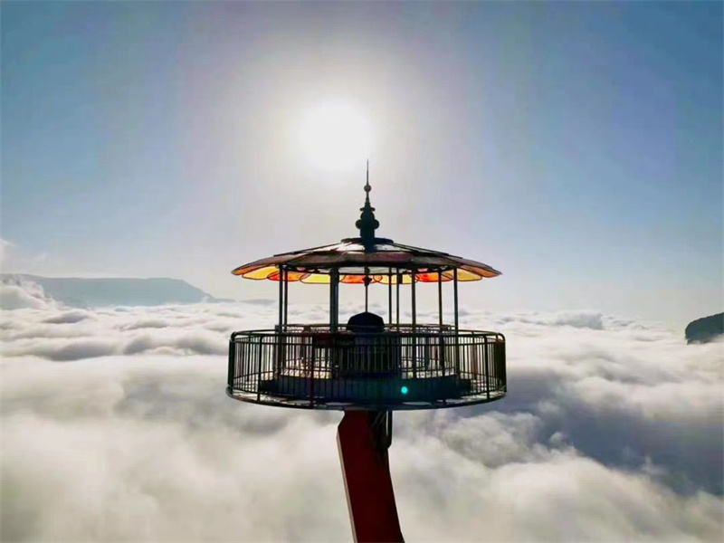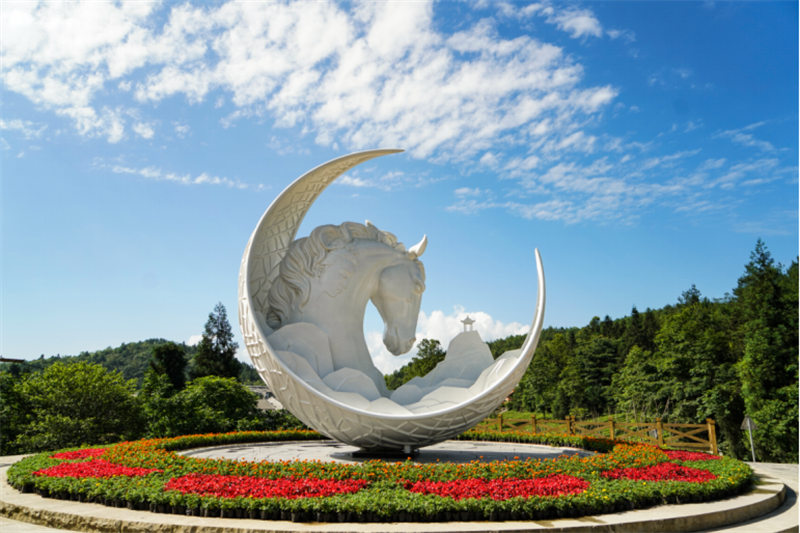 被誉为“爱情治愈圣地的”白马山天尺情缘景区,海拔1200米,空气清新,是避暑纳凉、休闲度假的必选之地。其中,火爆全网的飞天之吻是景区特色亮点,白马山与仙女山隔江相望,这里就是民间流传千年的白龙马与青衣仙女的爱情故事的起源。飞天之吻就是以白龙马与青衣仙女的形象打造,一双机械臂3分钟可上升54米,在高空定格接吻,形成飞天之吻的景象。飞天之吻下方有一座宝石一样的建筑就是8D影院,影院中是一块360度的环形屏幕,而且影片场景中的气味、烟雨、震动、光效等效果都能感受到,从而使传统的静态观影变成了动态参与,给观影者身临其境般的感受白龙马与青衣仙女的爱情故事。