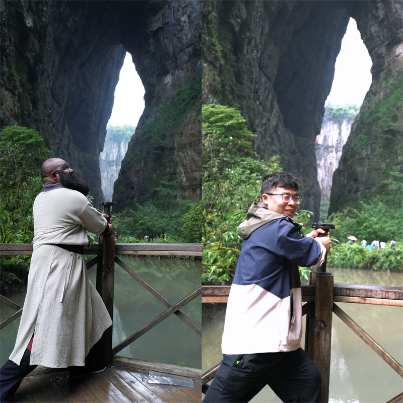 前不久董宇辉在与辉同行武隆专场直播时,在天生三桥“大刀倒影”景点“拔剑”未遂,并自爆出意中人是“李逵”。此消息迅速在网络上传播开来,吸引了不少游客前往景区拔剑挑战,打卡拍摄同款照片。现在更因每天打卡人数太多景点的刀柄有松动迹象,景区也连夜进行了加固,其火爆程度可想而知。