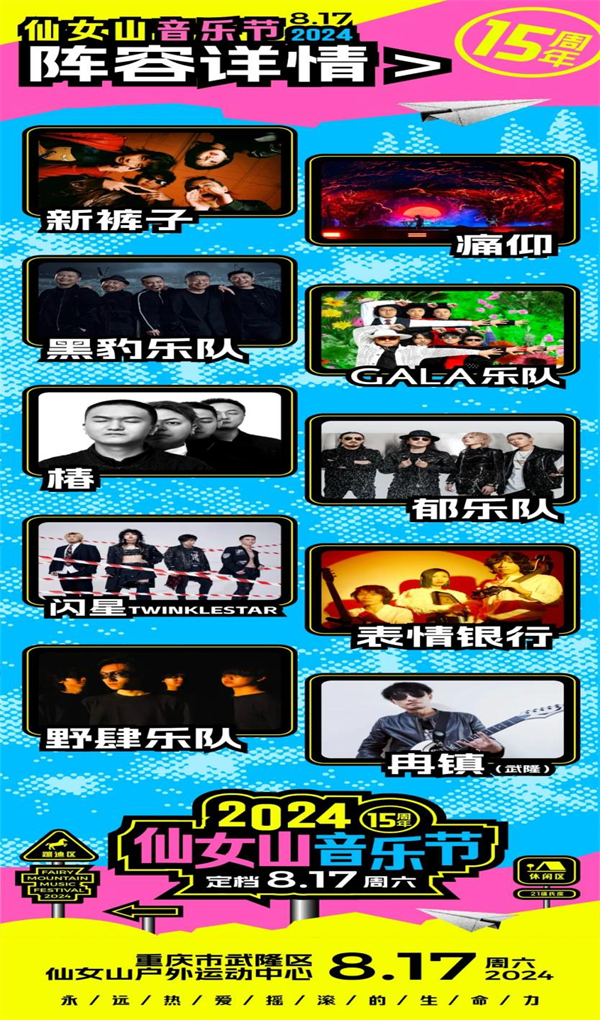 夏日晚间,落日晚霞、草坪露营、音乐狂欢... ...最让人期待的2024重庆仙女山音乐节明星阵容终于官宣啦!8月17日,新裤子、痛仰、黑豹、GALA、闪星、椿乐队、郁乐队、表情银行以及野肆等,将带来一场前所未有的摇滚音乐盛宴!
