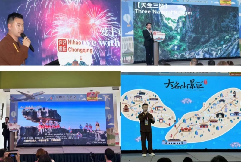 随后,“你好!重庆”重庆文旅推介及“幽远时空化境武隆”“世界苗乡养心彭水”“来世界的丰都看丰都的世界”专题推介正式开始。美轮美奂的宣传片、极具民族风情的音乐、详实生动的图文资料、激动人心的抽奖环节,将现场活动氛围推向高潮,让来宾们如身临其境,对重庆这座城市充满了好奇和期待。